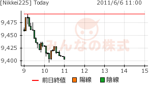 そういう意味では、今日の下げは想定内の動きなのだが、9400円を一時切る動きは、ぎりぎりのラインといえそう。