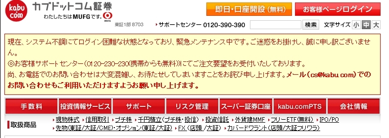 >かぶ・ドットコム証券は電話がどっと混むようです???