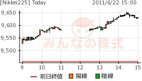 その後、出遅れ株も追随し9600円で一段落となった・・・。
