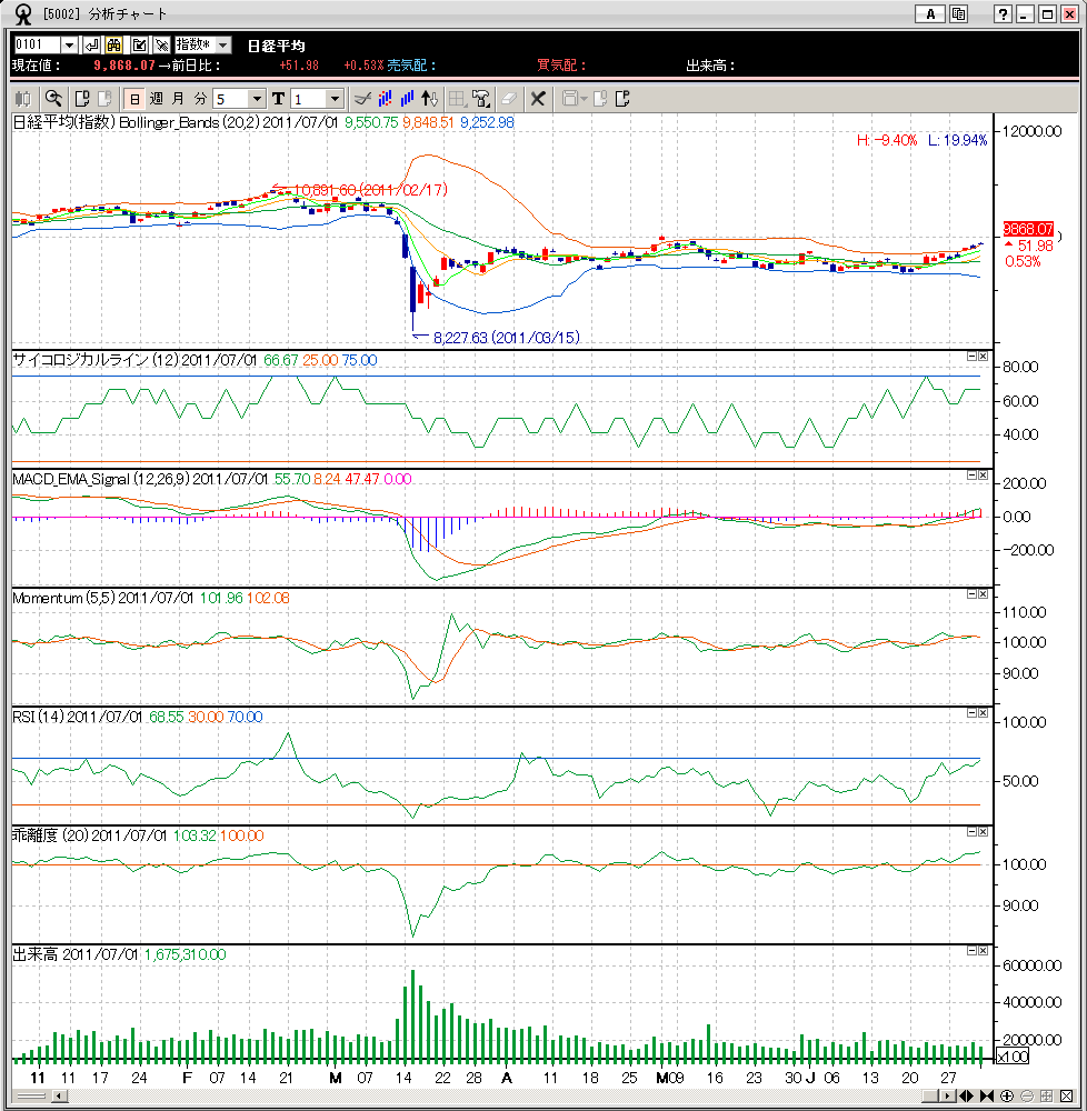 >私は8月ぐらいに個別株をと思っておりましたが,すっかり上昇トレンドに変わってしまいましたので,次の買い場を気長に待ちたいと思います(苦笑)。