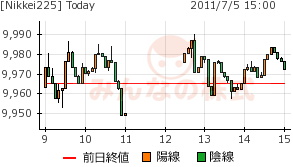 後場、9995円まで上げて、かなり上下に動き、下げで終えた。値動きは午前と後場が同じ。
