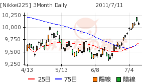 後場に入って、戻しそうな動きになっている。調整を終えそうな銘柄に買いが入ったのかも。日本自体の景気悪化の材料が出ているわけではなく、政局の混乱も、一時的にせよあきらめとともに目先の課題を解決する方向に動いており、織り込み済みと見られるかも知れない。