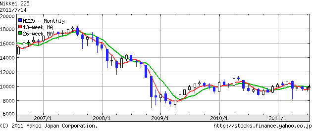2007年の7月あたりまで日経平均18000円台の高値を試していました。