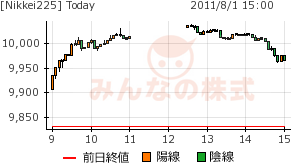 債務上限問題浮上以来の株価下げが終了したのを実感する。ただ、今日のNKの動きのように、単純に上昇していくかどうかは疑問が残る。