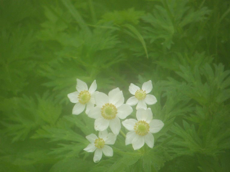 前の2種は3日撮影、ハクサンイチゲは4日撮影、ちょうど雨の時間帯でレンズが曇っています。