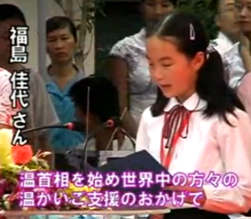 福島の小学生「福島佳代」ちゃんと温家宝首相が文通