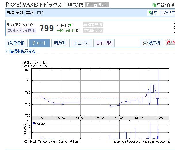 MAXISシリーズのtopix連動ETFですが、なぜか大引け3分前に爆上げし、前日比+6%以上で引けました。