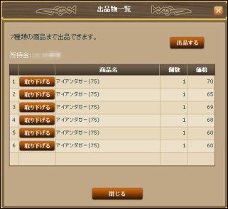ゲーム中で作成した武器を市場で売るのです。