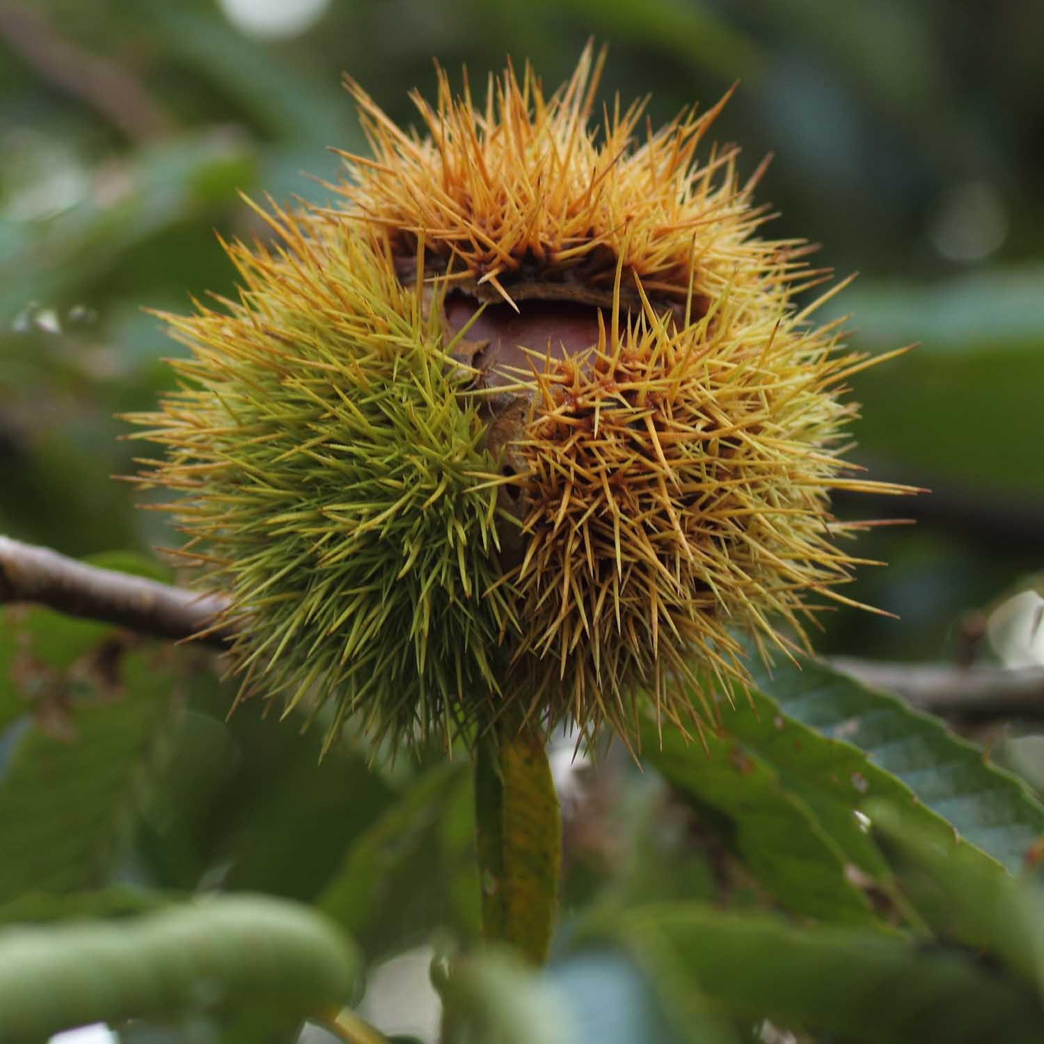 左は、栗 イガから飛び出すのはもうすぐ。