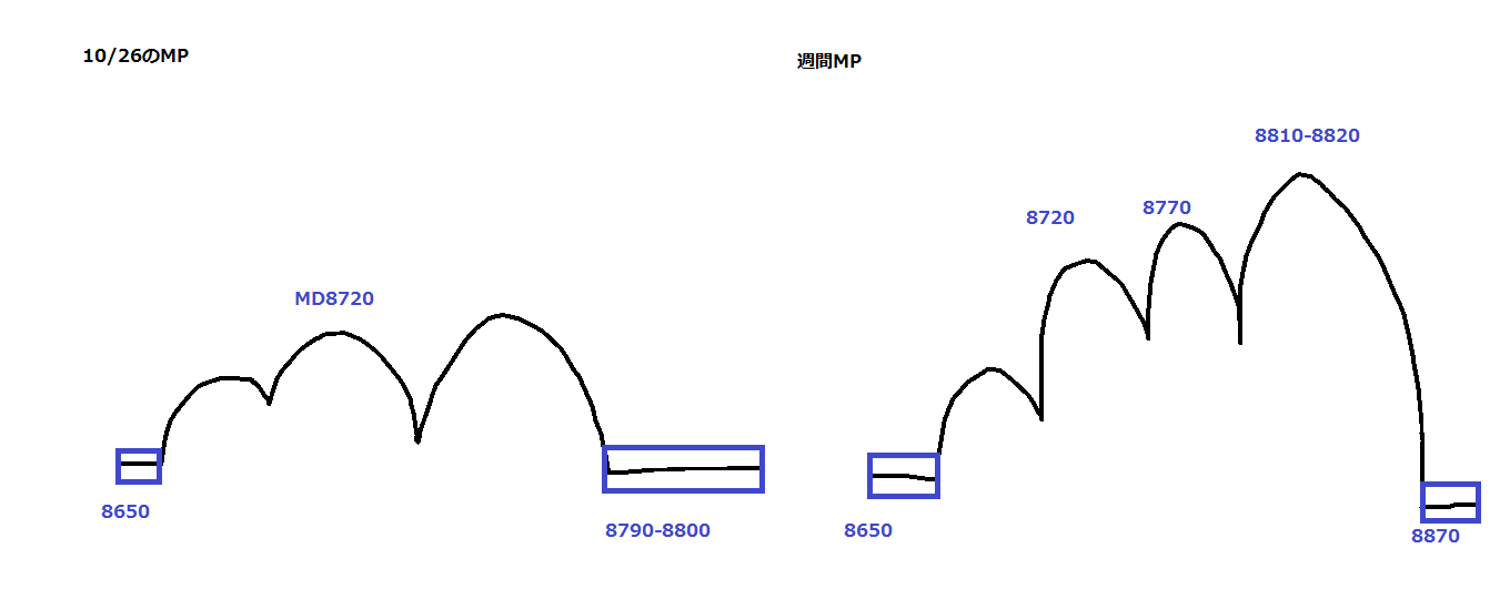 途中まで下にレッジを残したダブルディストリ形成か?と思ったけど最後の下落でレッジうめ、ダブルディストリ失敗。