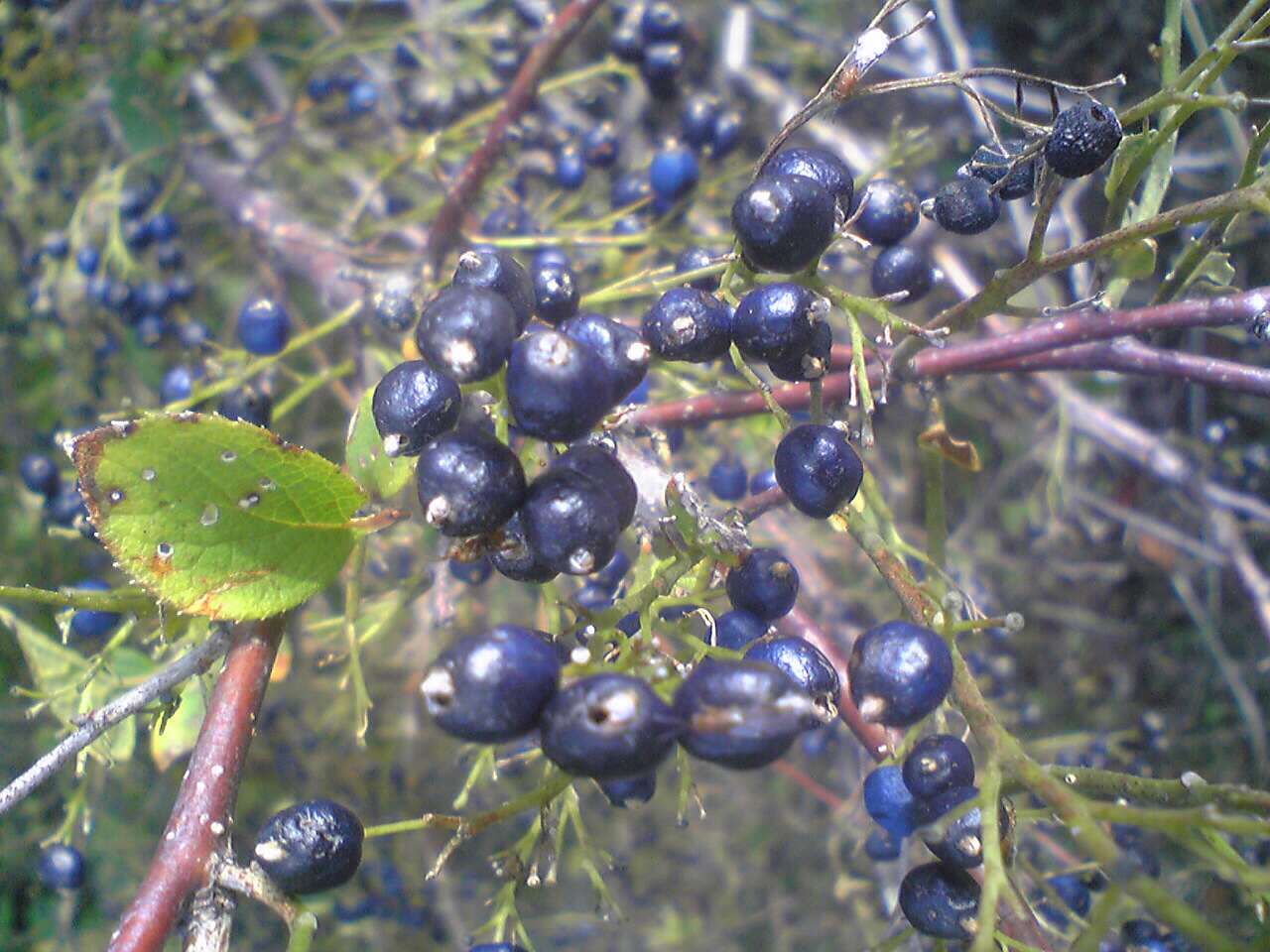 色々な実があります。今年は気候が変で、花も同時に見られました。どっちも綺麗な青い実で、有用なようですね。