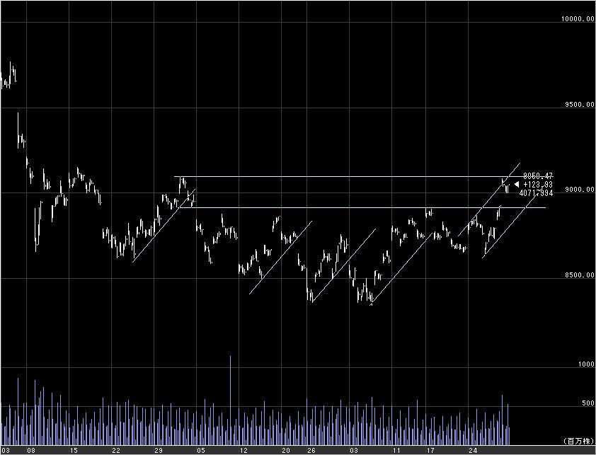 来週前半は調整し、上値を目指してくれることを期待したい。調整目処は五日線、または分足の仮想上昇レンジ下限。