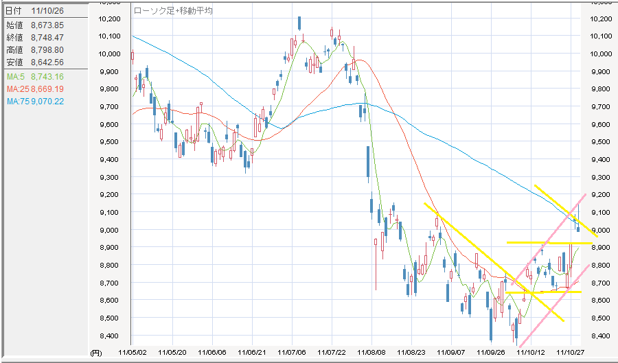 介入直後に株価が急騰したが、後場反落して、安値で引けた。