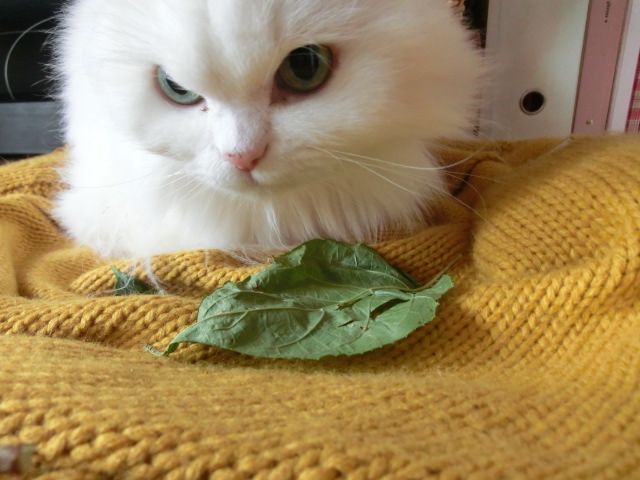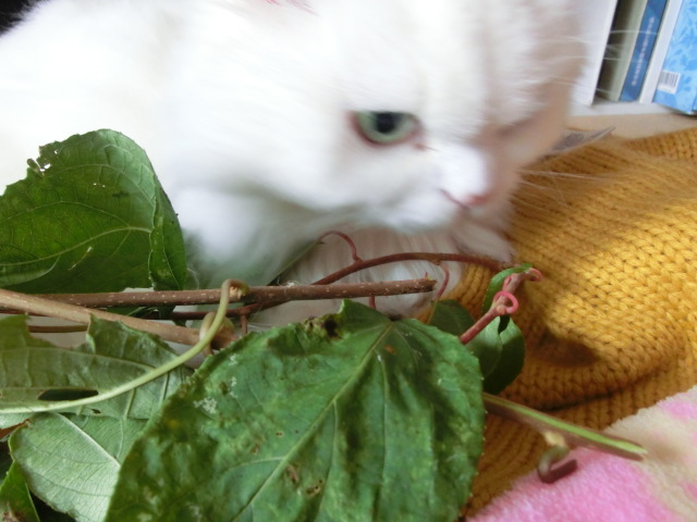 猫にはどの部分でも良いようで、葉っぱは破いてやると、ものすごく喜びます^^