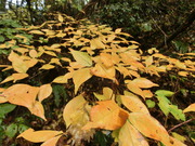 濃い緑色の葉が散って黒くなっても形はまだそのままに。