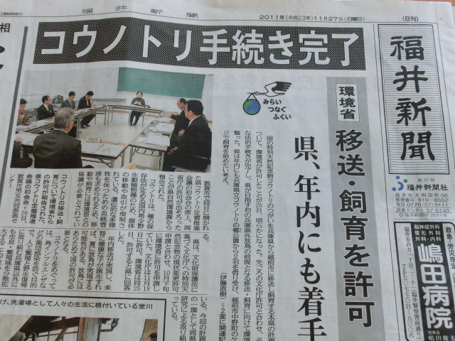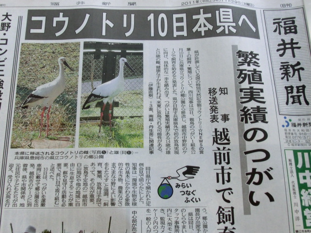 「福井新聞 コウノトリ」と検索すると・・・・・