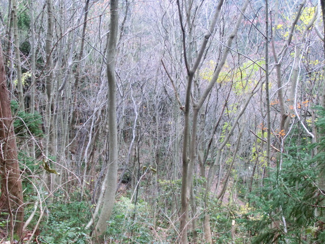 葉がすっかり落ちた雑木林です