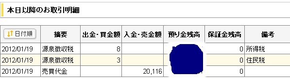 あ、運用益が出たので、所得税・住民税取られましたよ!合計11円ですが(笑)