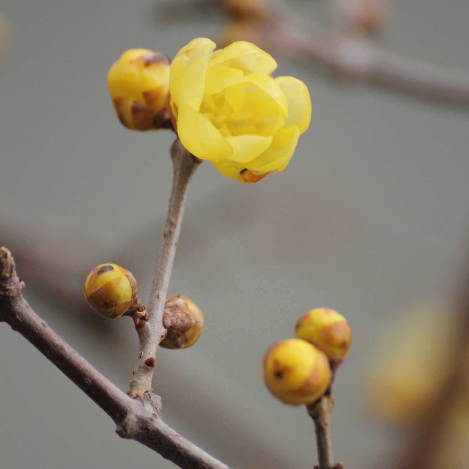 > ロウバイは寒い時期に珍しい黄色い色で目立ちます。