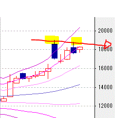 昨年来高値を3回attack失敗し高値が微妙に下がった陰線を並べる事になる。