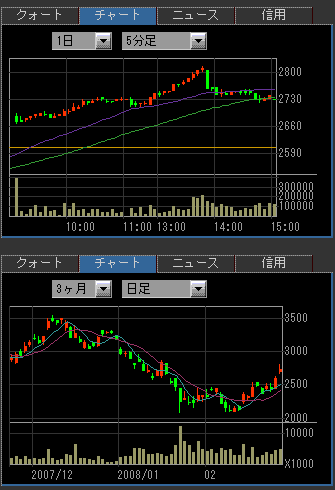 このところの相場は上がっては下げて上がっては下げての繰り返しで、この間NGTNさんが表現されていた様に売りも買いも恐る恐るといった具合でしょうか。鉱工業生産、機械受注、雇用統計指数などある程度の重要指数を確認できないと動きずらい面もあるようですね。どうもテーマ性に欠ける今の相場ではボロ株が物色されるようです。明日は何が騰がるのやら。