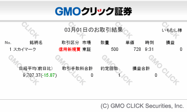 • 楽天の口座では、セラーテムを買い、即含み益。。。ストップを待ってたら、はいロスカット。