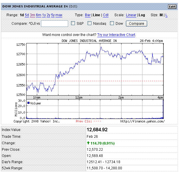∇ダウ:12,684.92(+114.70) ナスダック総合指数:2,344.99(+17.51) S&P500:1,381.29(+9.49)