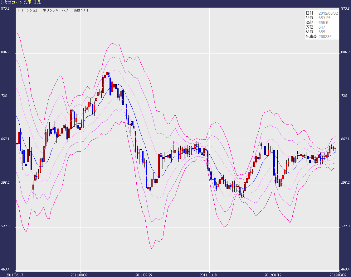 シカゴコーン日足・ボリンジャーバンドに上昇の兆し