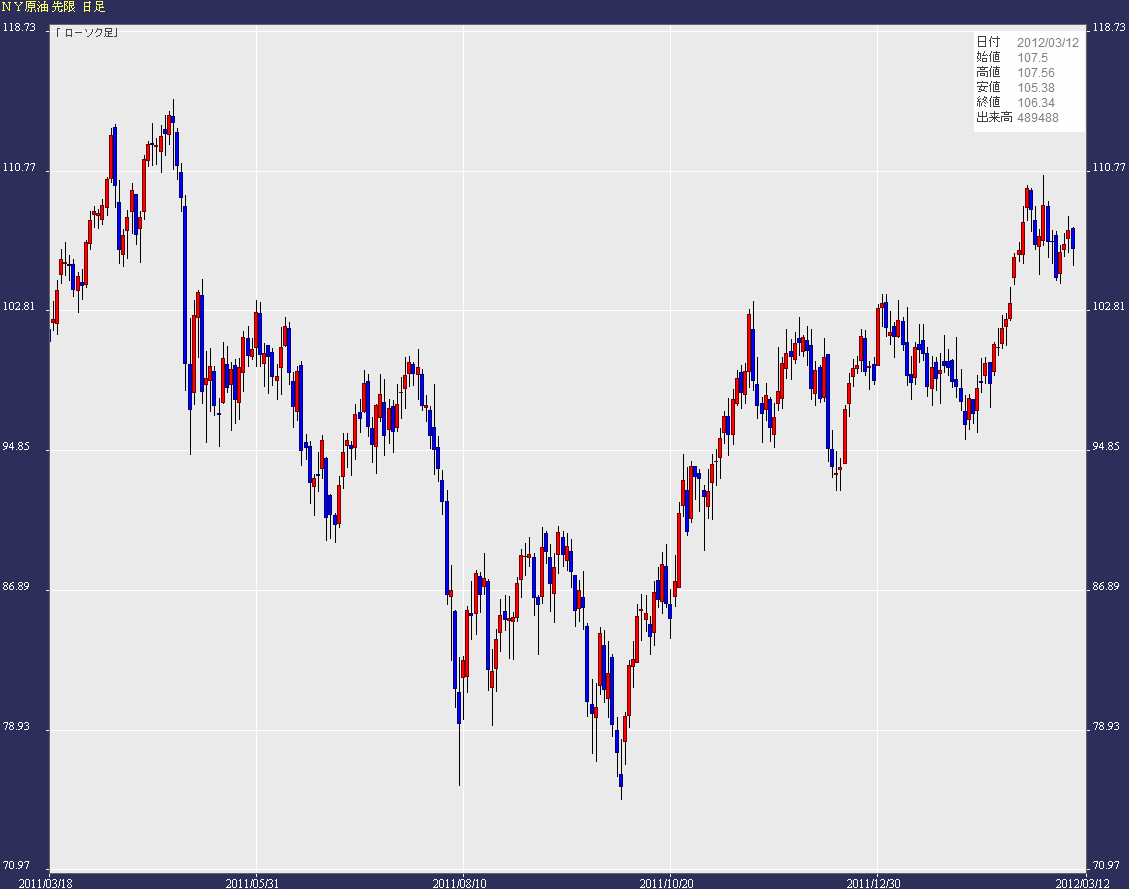 NY原油日足(つなぎ足)である。