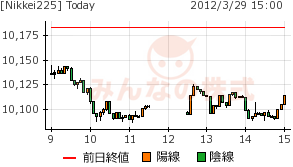 日足では、昨日は陽線、今日は陰線。明日が今年度最終日だが、上げる気配はない。