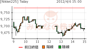 9700円の攻防中に9660円まで下げた。日足は髭付きの小陰線。