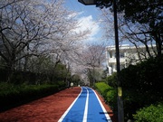写真右:東京工業大学のキャンパスに挟まれた道です。青いところは自転車レーン。車は入って