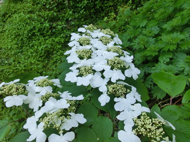 これは昨日の山歩きで見つけたヤマアジサイの花です