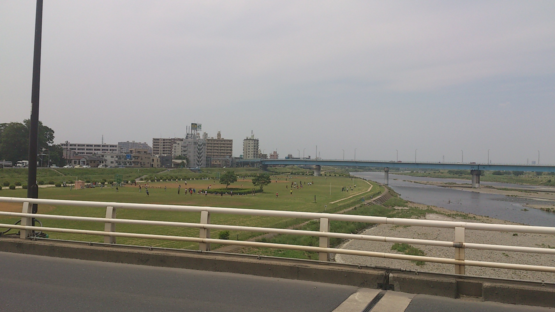 写真は、多摩川(二子玉川)の橋を渡っております~