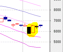 6月4日と6月5日の、同じような大きさの陰線と陽線、