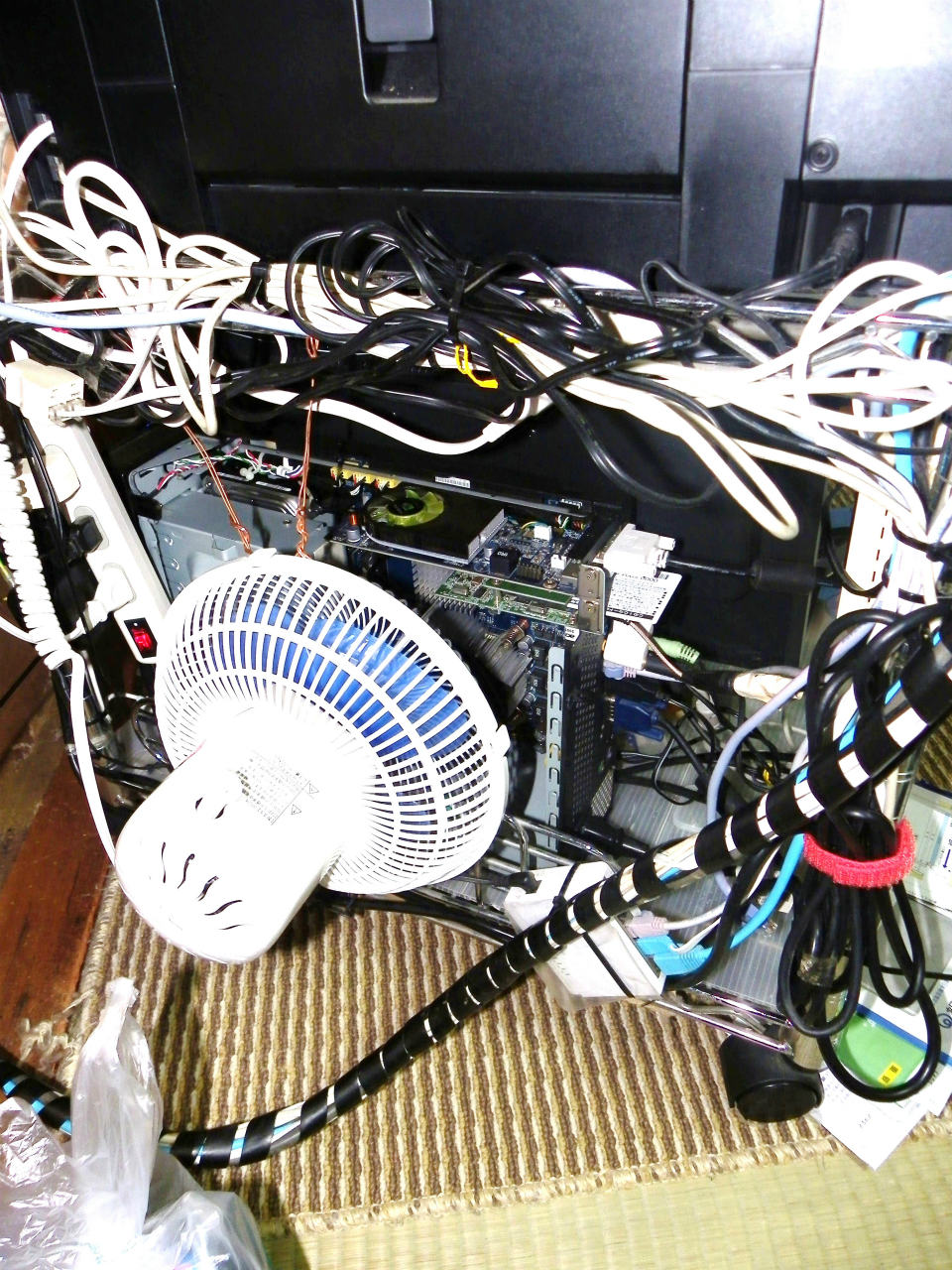 ヤマダ電機でPCケース用ファンを見たら、けっこう値段だったので、これならホームセンターでちっこい扇風機の方がって思い、ホームセンタームサシで1560円 (‐^▽^‐)