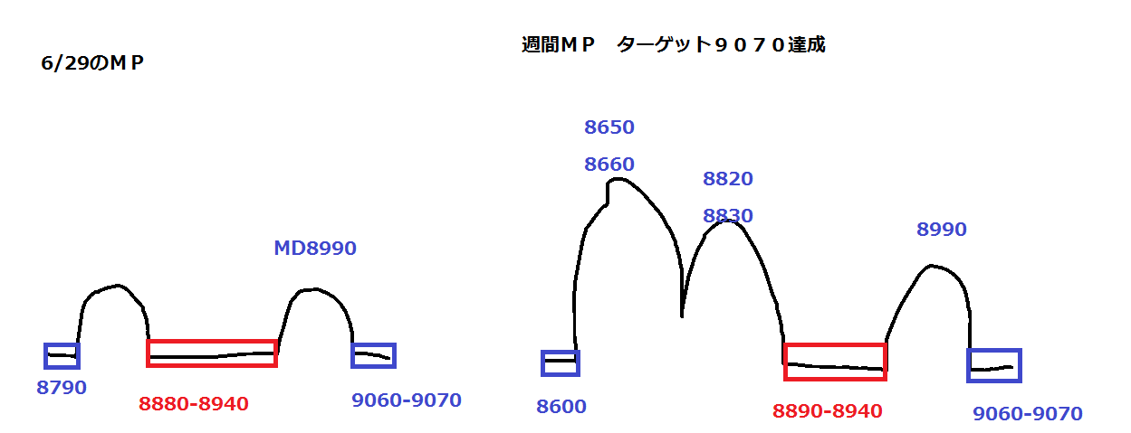 とりあえず、8880-8940のレッジをうめるのかうめないのか、このあたりを押し目に考えます。