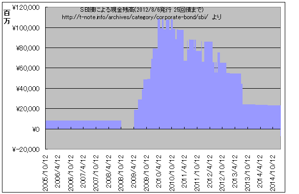 発行残高があるとプラス方向に、利払い・償還するとマイナス方向に動きます。