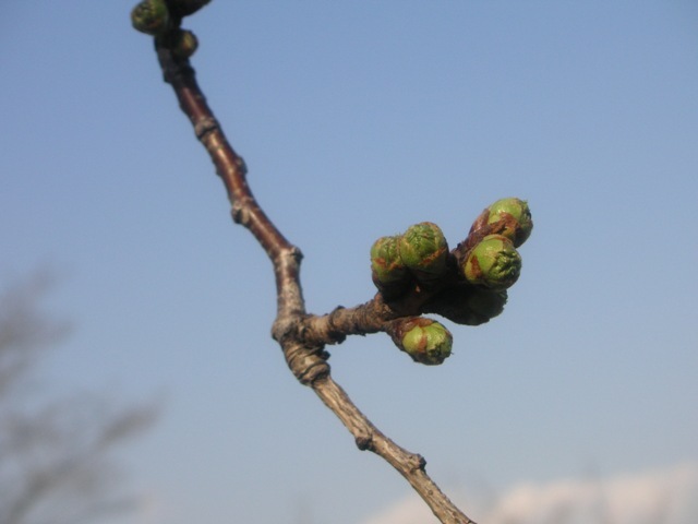 梅の花は、ほとんどの木で花開いてきましたし、桃の花も基準木が開花したようです。桜は、木全体がピンク色になりかけていますから、開花は、もう少し先ですね。