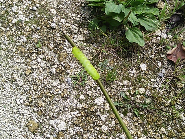 自分が知っている蝶の幼虫とは違うので、ヨトウガに近い種類の蛾の幼虫に似てます。