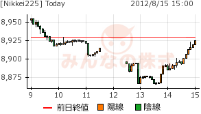 一応、明日の憶測。今日の安値確認で、明日は9000円を目指す可能性が高い。ただし、円高に転ずると9000円に届かないだろうが。