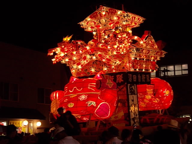 賑やかな夜高の唄に合わせあんどんが練り歩き