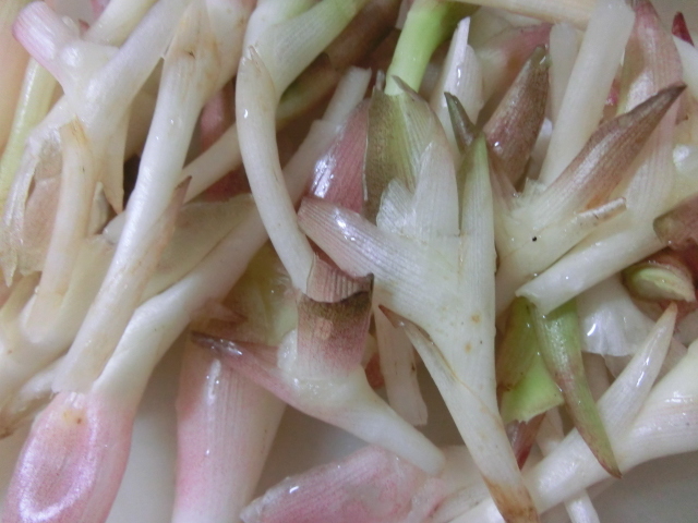 あまりにたくさん採れるので、茗荷は近所に配り、根っこの白い部分は 「はじかみ漬け」 にします