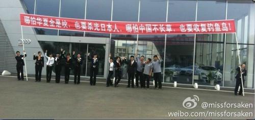 ”中国を専門とするジャーナリストのチャーリー・カスターによるブログ「chinageeks」は17日、「中国の反日暴動は政府が支援している」と題した記事を公開。中国で拡大している反日デモを紹介するなかで、中国のアウディ販売店の社員が横断幕を掲げたとする写真を掲載した。
