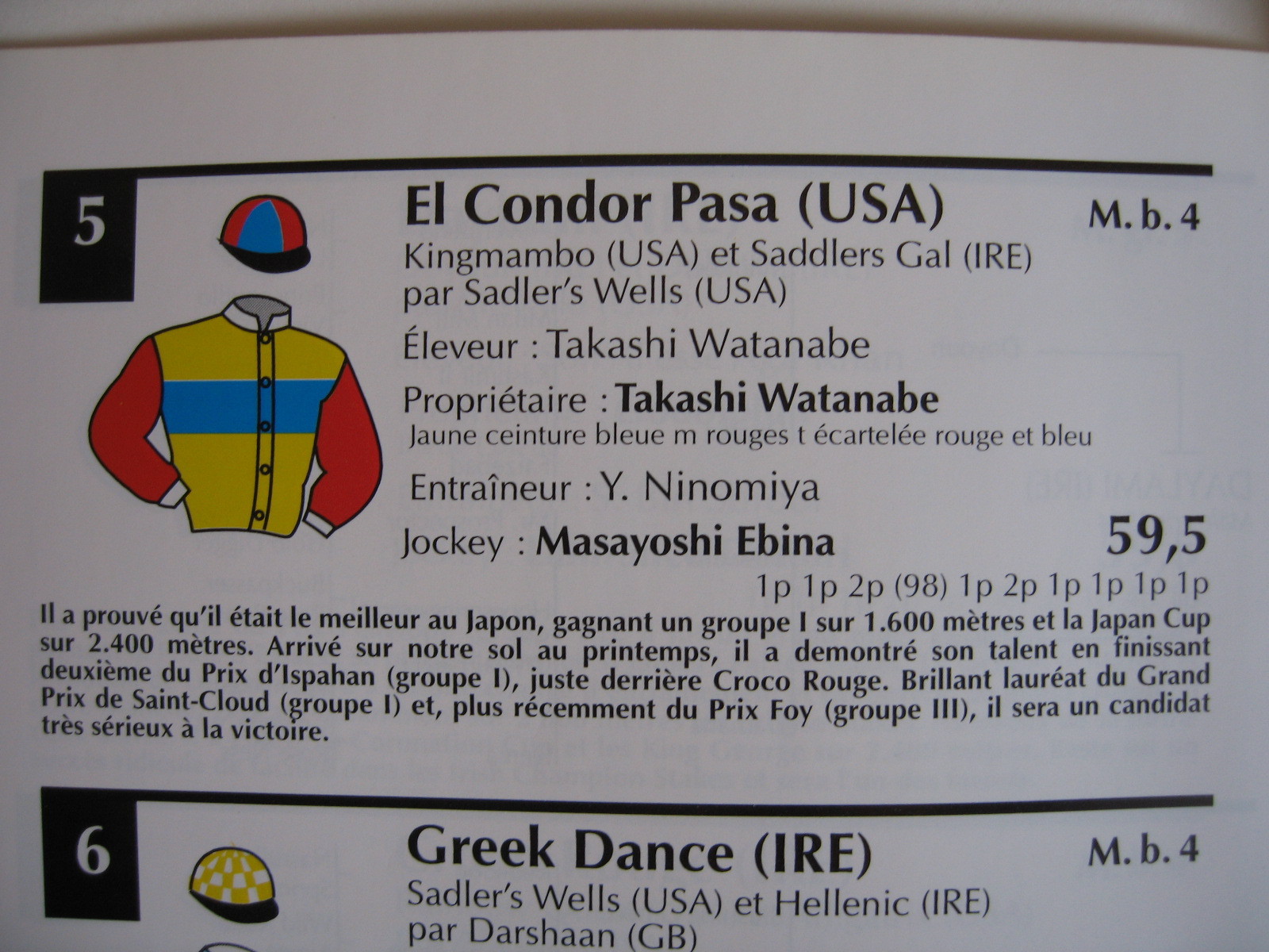 いつかエルコンドルの子孫が凱旋門賞に挑戦してモンジューの子孫と対決するのを楽しみにしています。