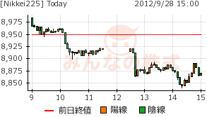 9/28 のNKは、前日の上げを打ち消す下げで8850円を試す2度目となっている。