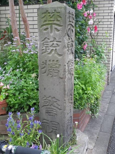 ↑九品仏浄真寺の裏手にあった石碑(?) 「禁銃猟 警視庁」とあります。いつんだよ、これ。