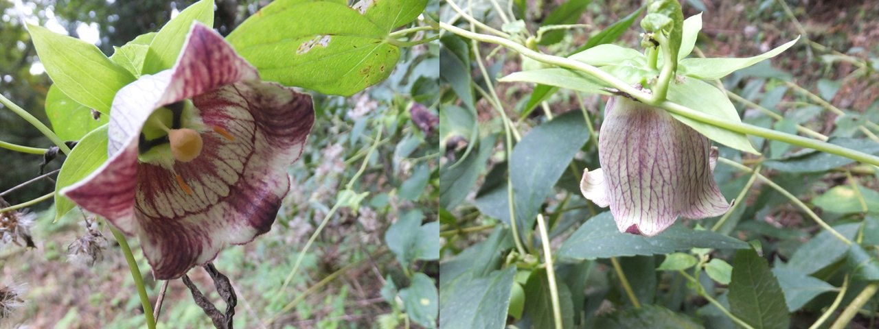 釣鐘型の花が咲いてますが・・・・・色や柄が・・・・・地味です