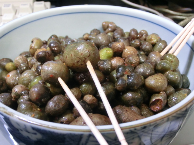 毎年、この季節のおやつは・・・・山で集めたムカゴの油炒め+味噌+七味