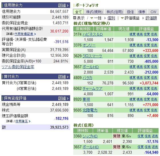 今週精算した 2726, 9511 がだいぶ上がってくれたのが